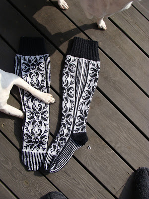 Mitt i sockstickningen blev jag förkyld , nös till och vände på mönstret, men de blev ju bra ändå.